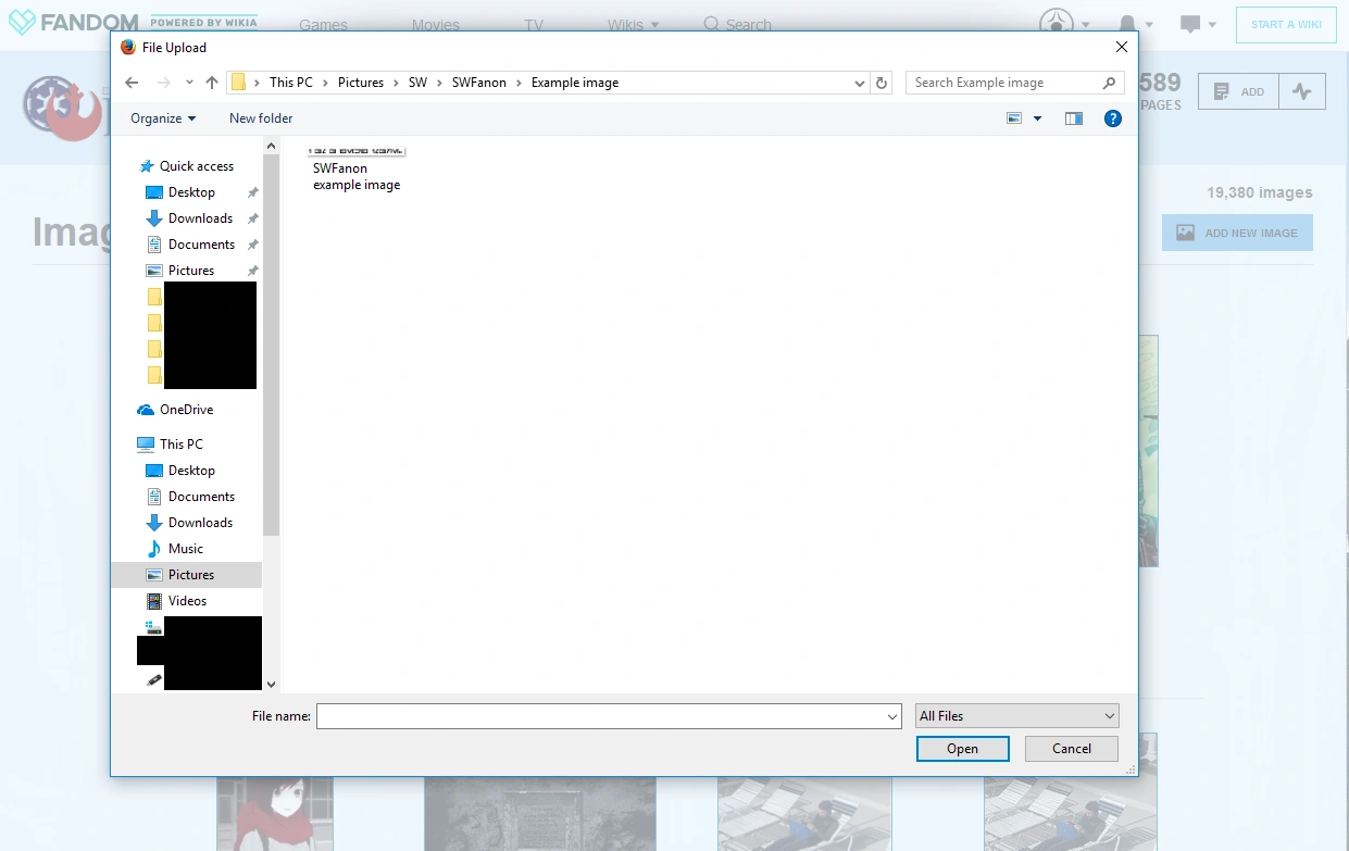 - ↑ Okay, there is a very narrow exception for images of those websites, such as a screenshot from Star Wars Fanon (like the images in this tutorial) or a picture of the day's Google Doodle. But apart from a tutorial like this, you'll probably never need that.