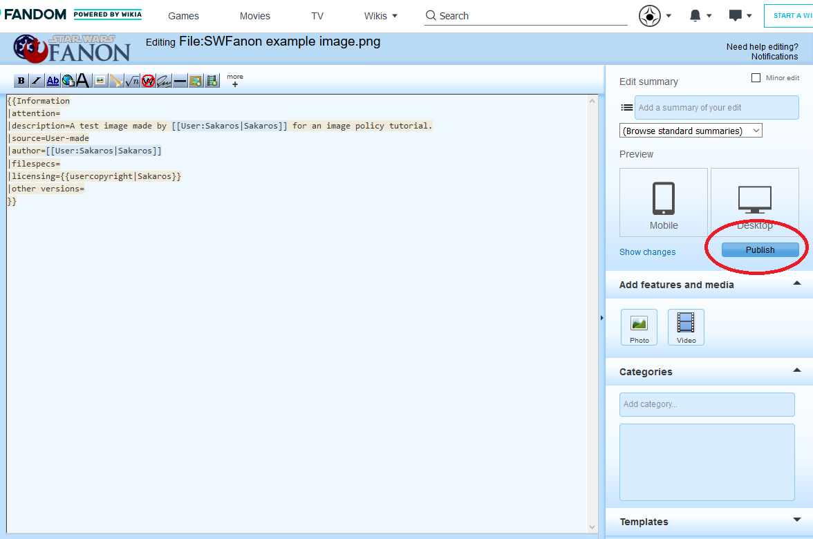 - If you already uploaded an image without source and/or licensing information and need to fix it, make sure you understand the first three steps, then proceed to Step Four.
