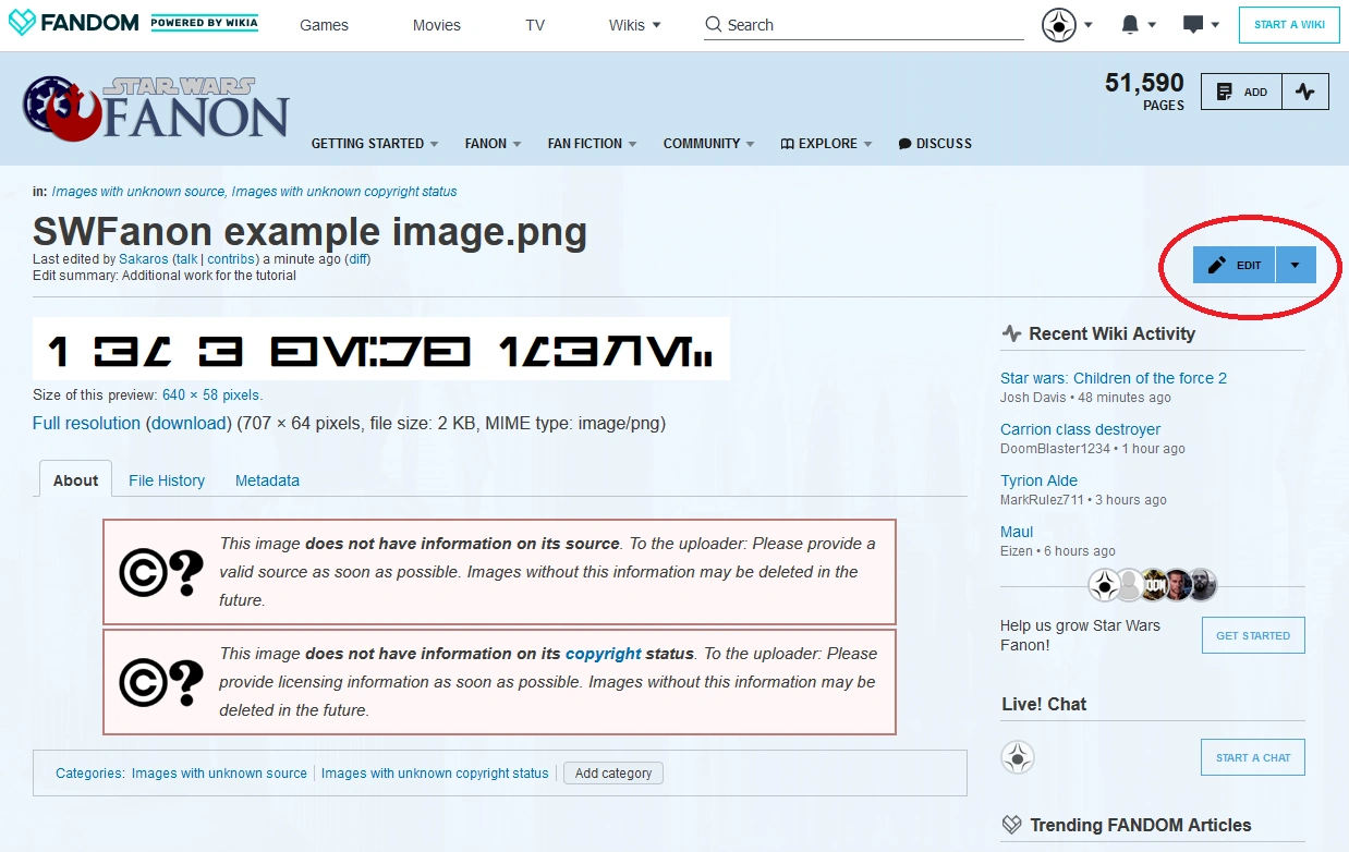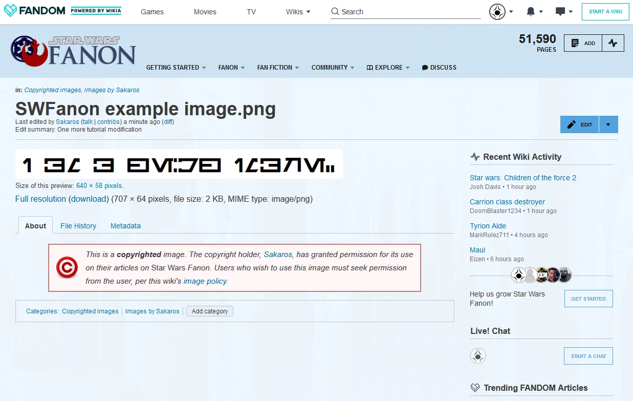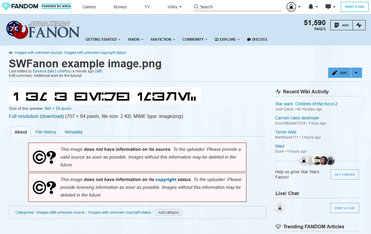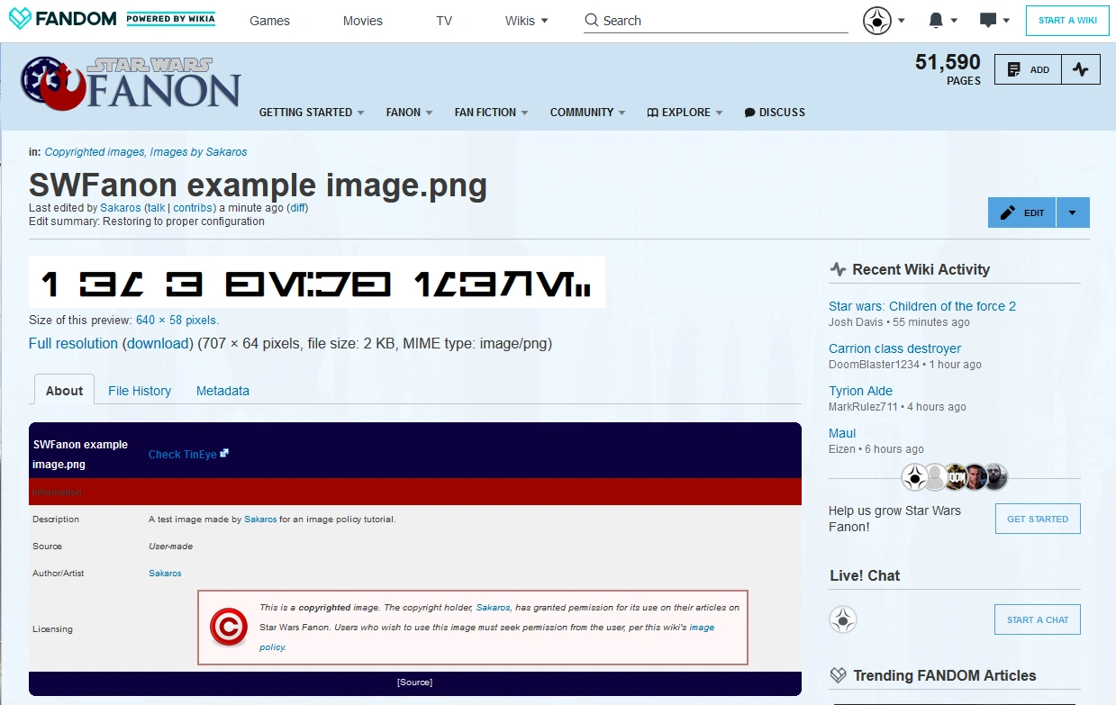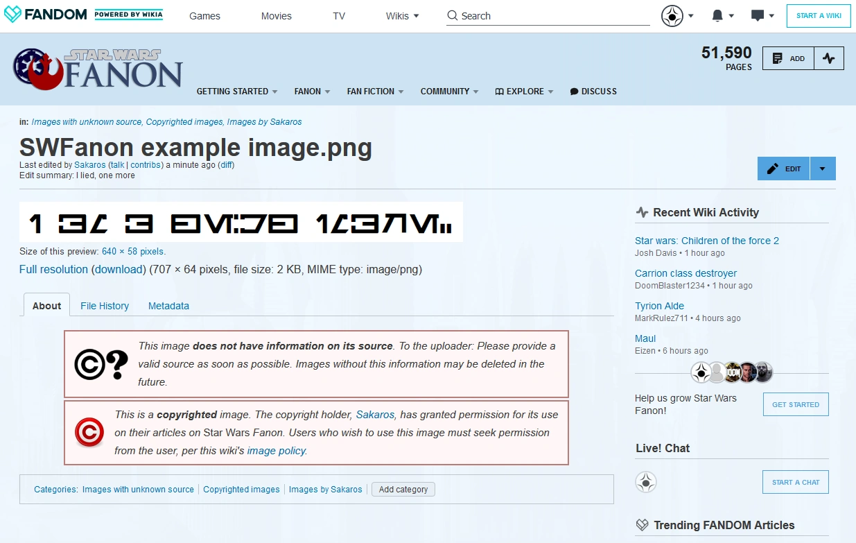 "Easy!" you say. "I found it on Wookieepedia, so that's the source!" No. Saying Wookieepedia is the source is to say the first time that picture ever appeared was on Wookieepedia, and 99.9% of Star Wars Fanon users know that is not true. Other wrong answers include: