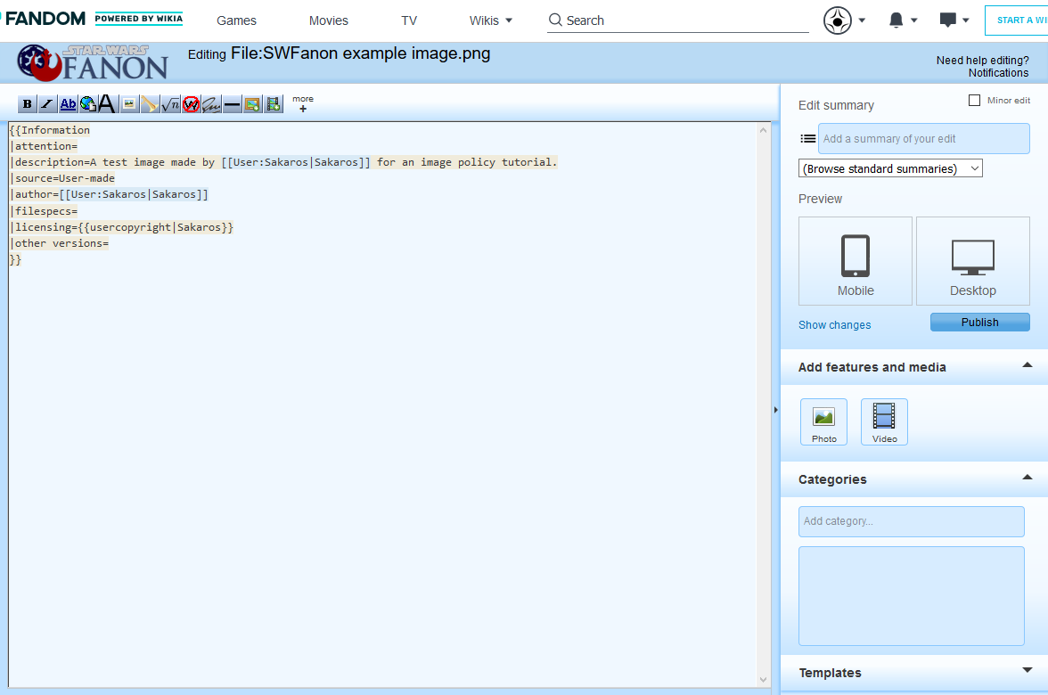 Below is Sakaros's guide to uploading and properly sourcing and licensing images. Read the first section. Then…